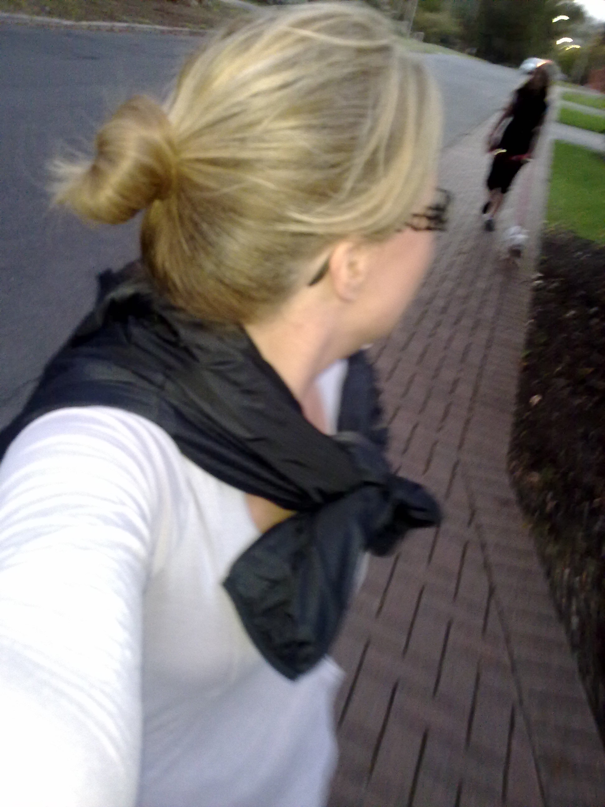 I think I need a lung transplant first!! We took a left turn tonight and went UP the hill. I was ready to turn back after five minutes. Completely puffed. But we (Miss JM and I) forged on… this time with the dog in tow as well. Glad I did as we got a stunning view over the city and the legs felt good as we powered back DOWN the hill. Can quite easily say i felt good about it.